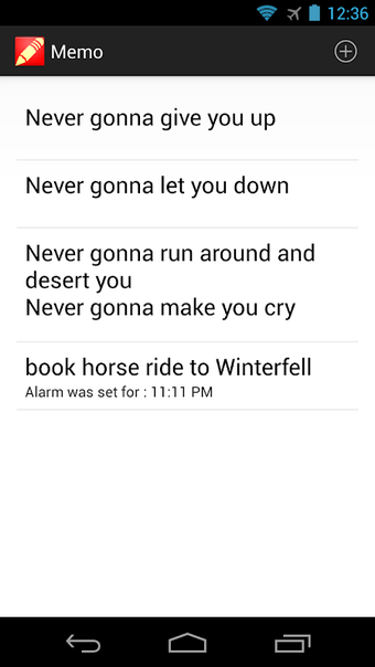 Memo to aplikacja na Androida, która oferuje szybki i łatwy sposób na robienie notatek i ustawianie przypomnień. Dzięki Memo użytkownicy mogą tworzyć nowe notatki z powiadomieniami z dowolnego miejsca za pomocą Google Now Voice Search. Wystarczy powiedzieć "Notatka dla siebie", a następnie to, o czym chcą zostać przypomniani. Aplikacja umożliwia dodawanie szybkich notatek i tworzenie przypomnień, zarówno regularnych, jak i czasowych, w ich zasobniku powiadomień.